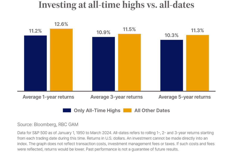 Bloomberg, RBC GAM, 2024 [URL: https://www.rbcgam.com/en/ca/learn-plan/investment-basics/investing-at-all-time-highs/detail]