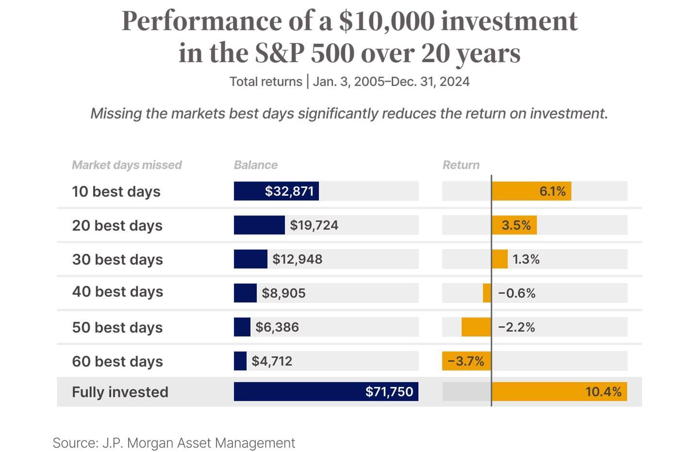 While past performance doesn't guarantee future results, this underscores how difficult it can be to predict the right moments to be in or out of the market.